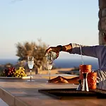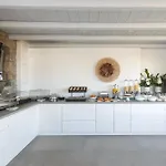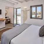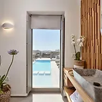 Ogni giorno nell'hotel inizia con una colazione vegetariana gratuita. Gli ospiti possono godere di un bar sulla piscina. Il quartiere è ricco di ristoranti, tra cui il ristorante Jackie O' Mykonos, situato a 4 km dalla struttura.